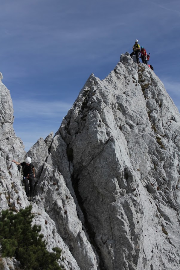 Začeli smo na Ljubelju in v primernem tempu kmalu prispeli do koče na Zelenici, kjer smo se razdelili v dve skupini. Ena skupina – večina članov – je odšla na ferato Spodnji plot, druga manjša pa na Triangel, kjer smo se vsi spet sešli in nadaljevali na prečenje grebena.