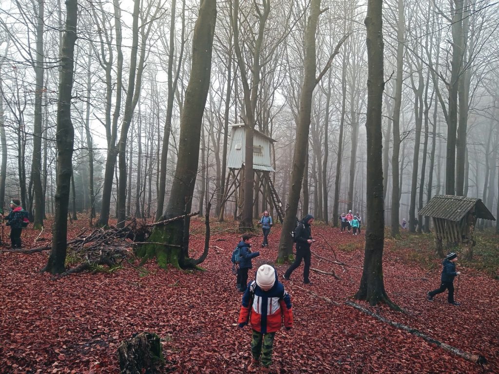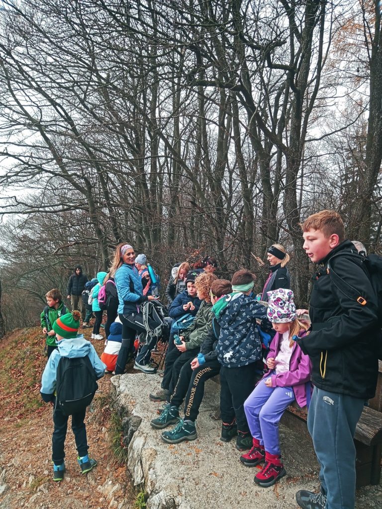 Do doma CŠOD na Prvinah, kjer je pred leti obratovalo smučišče nas je pripeljal avtobus. Ko smo videli koliko imamo do vrha, smo jo hitro ubrali v gozd. Polno listja je bilo. Kmalu smo prispeli na rob planote, kjer bi lahko gledali v dolino, a je bilo kar nekaj oblačno in megleno. Mraz pa je že začel pritiskati. Vseeno smo na klopci malo počili. Nekaj malega je bilo še do planinskega doma. Nismo se ustavili, smo šli raje kar naprej do vrha. Zopet skozi gozd, mimo krmišča na Črni Vrh. Velik možic sredi gozda, brez razgledov je bil naš cilj. Hitro fotografiranje in zaradi močnega vetra hitro nazaj. Ustavili smo se še pri vpisni skrinjici, nato pa hitro do planinskega doma. Seveda so nas pred njim zvabila igrala, znotraj pa topli napitki in okusna hrana. Na poti nazaj smo pogledali tudi v zimski bivak.